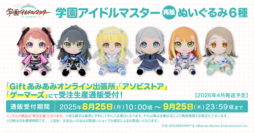 イベント詳細 日付: 2025年9月21 – 12月28日 カテゴリ: グッズ・コラボ情報 雨夜 燕ちびぐるみ発売 受注期間 2025年9月21日(日)20時~2025年12月28日(日)23時予定 商品お届…