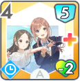 ![]() 新生徒会爆誕! (強化可能回数1) | カスタマイズ前 | – | [コスト]体力消費4 レッスン開始時手札に入る 消費体力減少4ターン スキルカード使用数追加+1 (レッスン中1回) | – |