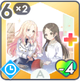 ![]() | ご指導ご鞭撻 カスタマイズ後 | [コスト]体力消費2 体力が50%以上の場合、使用可 パラメータ+4 元気+5 次のターン、手札をすべてレッスン中強化 (レッスン中1回) 元気+4 |