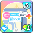 ![]() | 心のアルバム カスタマイズ後 | [コスト]体力消費0 パラメータ+6 元気+5 次のターン、スキルカードを引く 2ターン後、スキルカードを引く (レッスン中1回) スキルカード使用数追加+1 |
