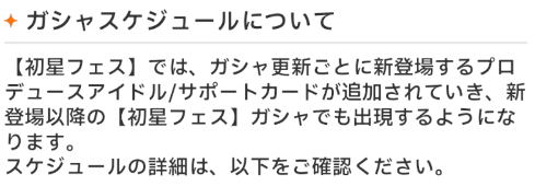 ですが、お知らせにもあるように新登場以降の【初星フェス】ガシャでも出現します。