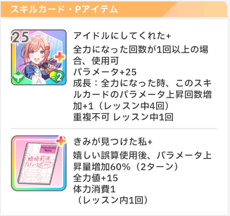 ・固有Pアイテムのパラメータ上昇量増加60%がかかった状態で、「成長済み固有カード」を使用