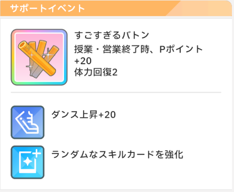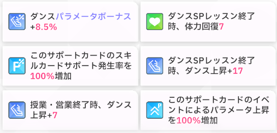 営業ごとにダンスステータスが上昇し、さらにダンスSPレッスンでも上昇します。