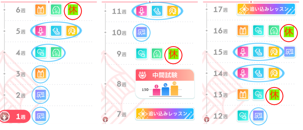 「次のレッスン開始時やるき+2」で各レッスンも安定するため心強いです。