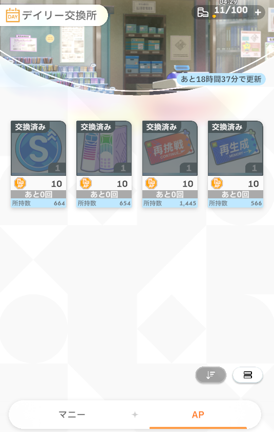 忙しい場合はデイリー交換所でAPを消化しましょう。