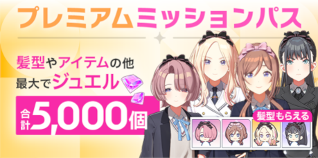 1,980円でジュエルが5,000個や髪型衣装が手に入ります。