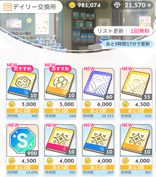 「おすすめ」と表示されているアイテムは割引されて少しお得です。交換しておきましょう。