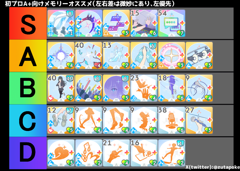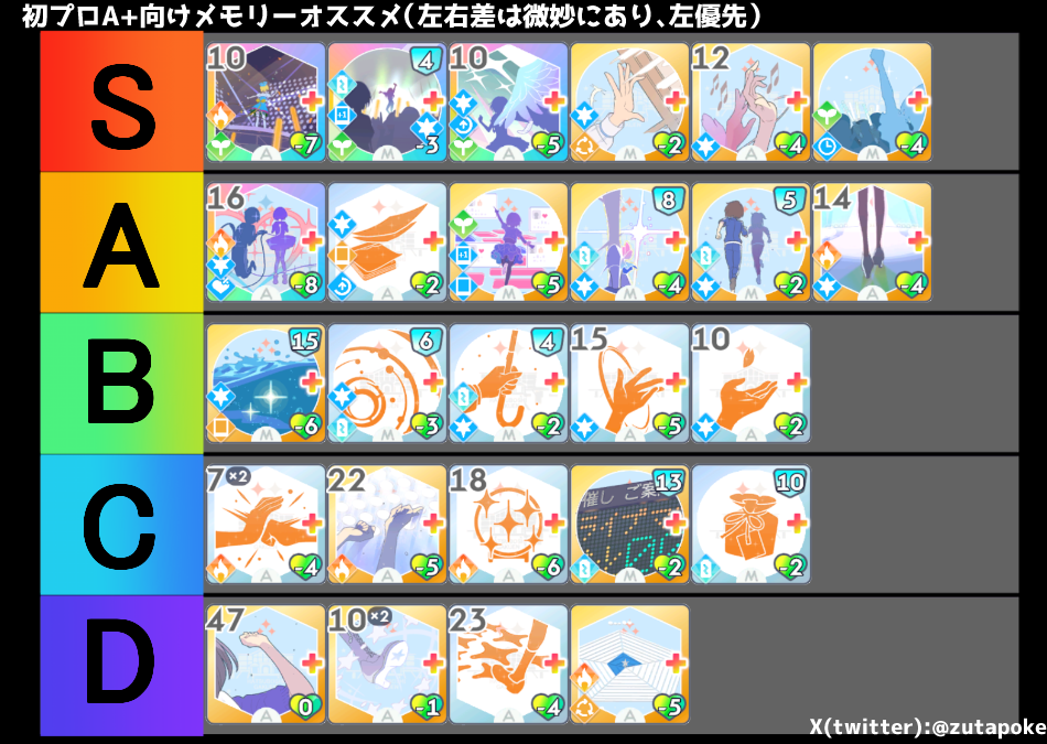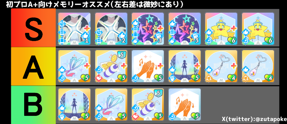 メモリーオススメは「総合芸術」「アイドルになります」「飛び立て!」「キラメキ」「モチベ」