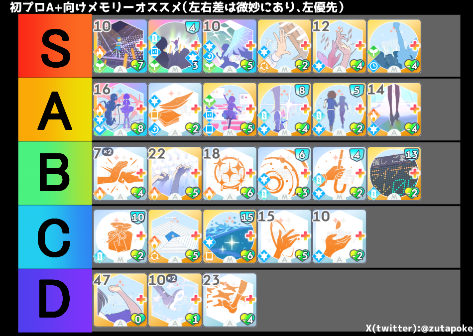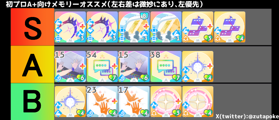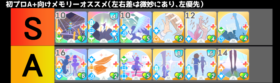 特に「総合芸術」「アイドルになります」のメモリーを所持している場合は積極的に入れておきましょう。この2枚をうまく使えば試験のスコアが大幅に伸びます。