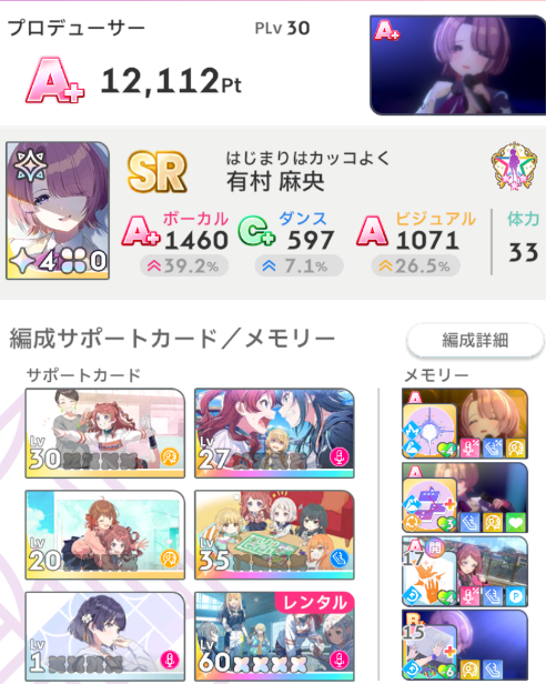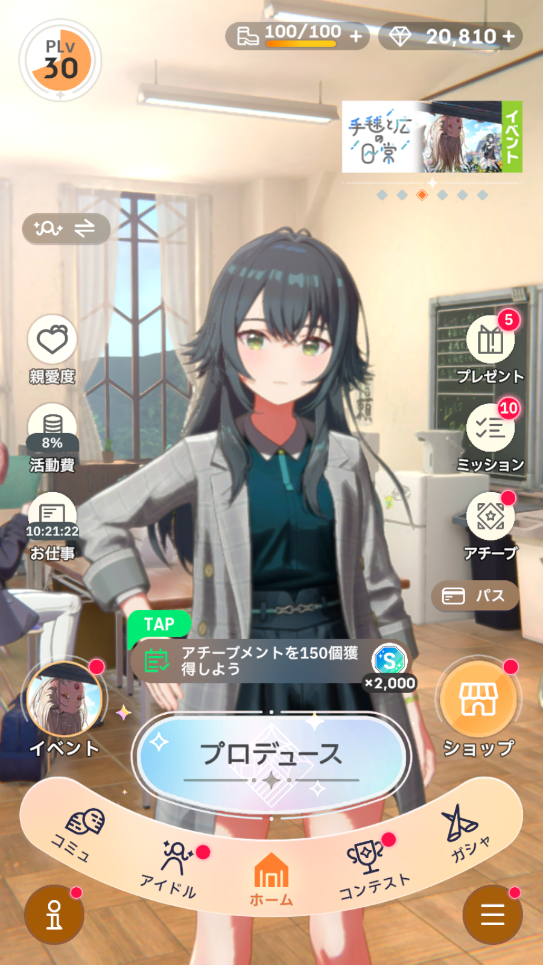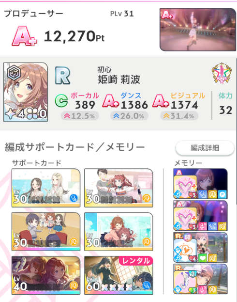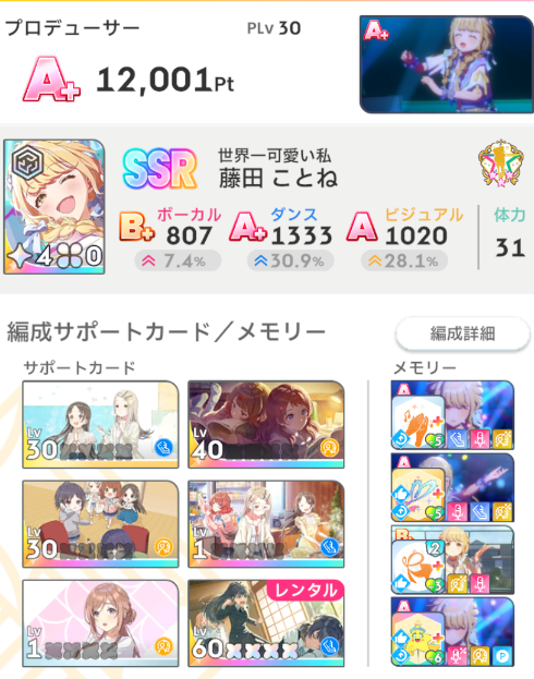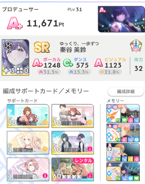 これまでの記事では初星課題を進めつつプロデュースを行いPLvと親愛度を上げてきました。