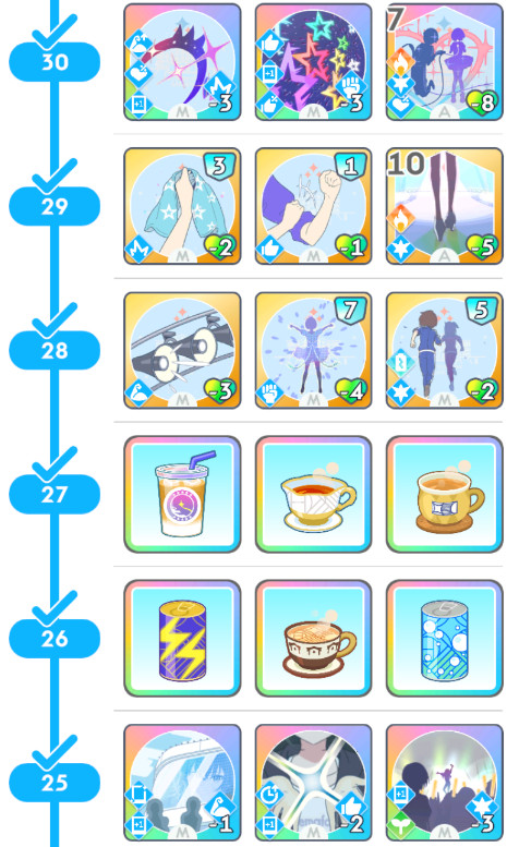 これらもかなり強力なスキルカードになるため、そこまでレベル上げに注力し、P課題とアイドルへの道攻略に徹しても良いと考えます。