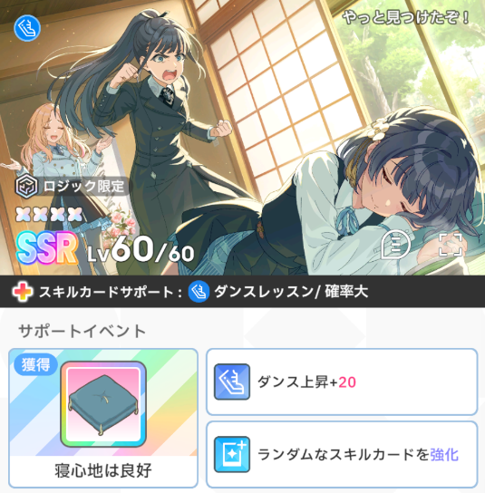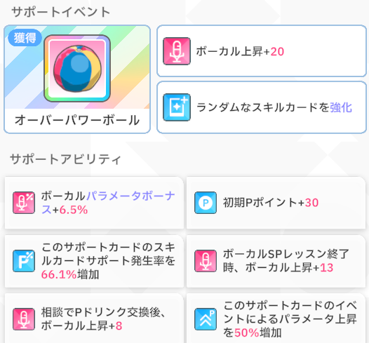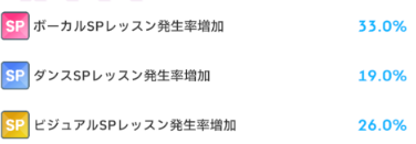 「〇〇SPレッスン終了時、〇〇上昇」の付いたサポカが3枚入っており、恩恵を大きく受けられました。
