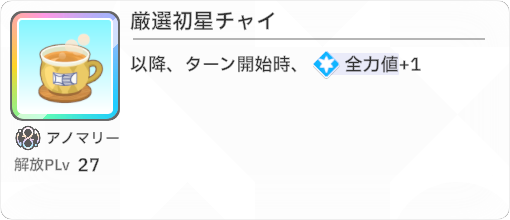 「厳選初星チャイ」を所持している場合は1ターン目に飲みましょう。