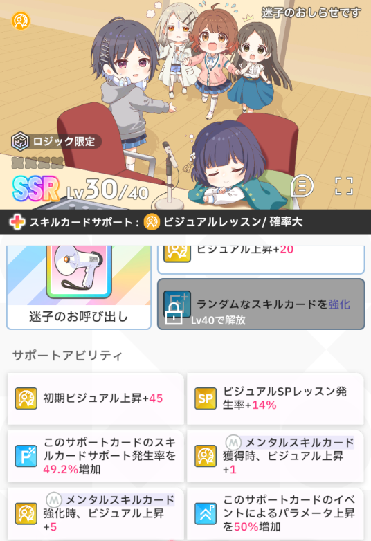 コインガシャから出てくるサポートカード「みんなの意見を聞かせて♪」がそこそこ強いです。ロジックとセンスのコインガシャサポートカードほど強力ではありませんがあると便利です。所持していれば入れましょう。