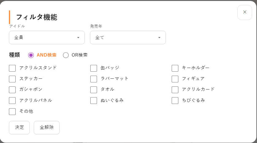 複数条件からのOR検索AND検索ができるようにしたのだ!とはいえ、まだぬいぐるみとフィギュアしか入力できていないから効果は薄いのだ!
