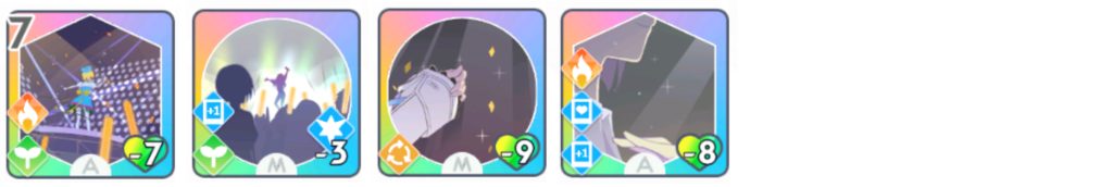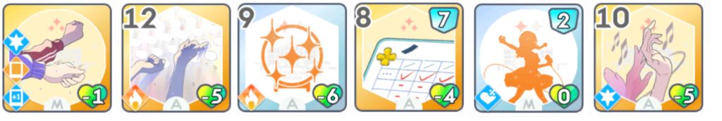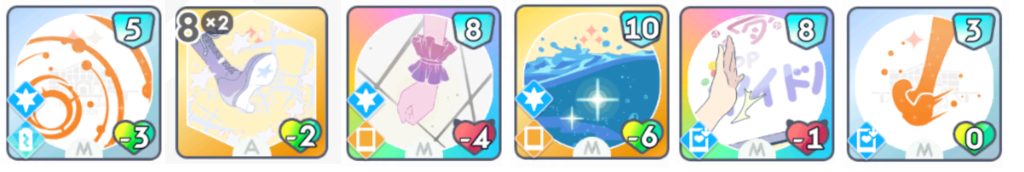 このPアイドルの固有カード『学園一のアイドル』は火力が低いため、カードの引きが悪いとPerfectを取るのは難しいです