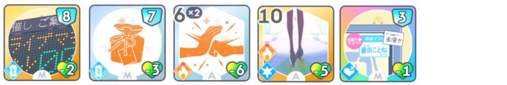 ・『仕切り直し』『心・技・体+』『テレビ出演』などの消費体力減少カードがある