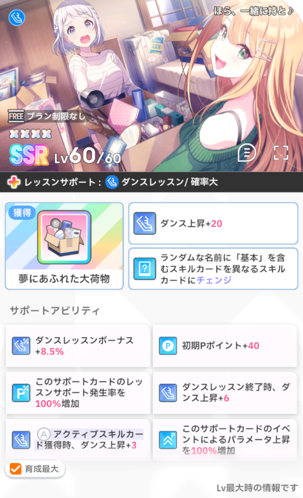 レッスンボーナス型の『私の目に狂いはない』『ほら、一緒に持と♪』は特化が違う場合はおすすめしません