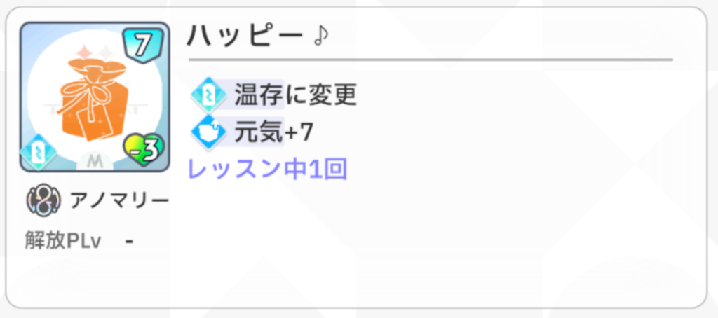 また、アノマリーでは『温存』を解除するとスキルカード使用数+1になります