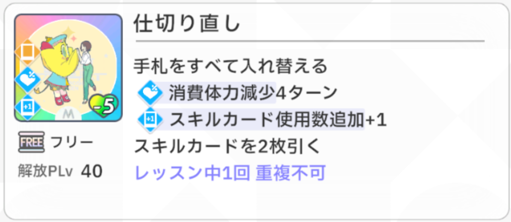 ・スキルカードを入手するときに『レッスン内1回』のカードを選択する(ループさせるカードは除く)