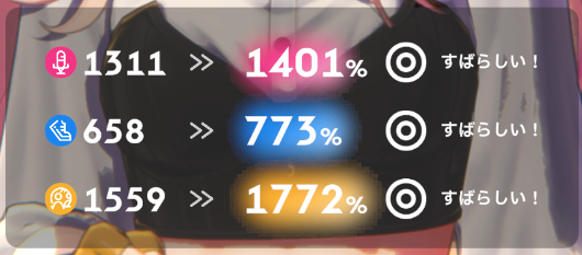 | 3 | ボーカルを1000以上でプロデュース完了「歌姫」 |