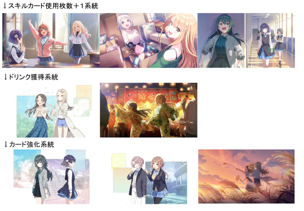 (使用アイドルの固定カードやPアイテムなどによって優先度は変わります。おおよそなイメージです。)