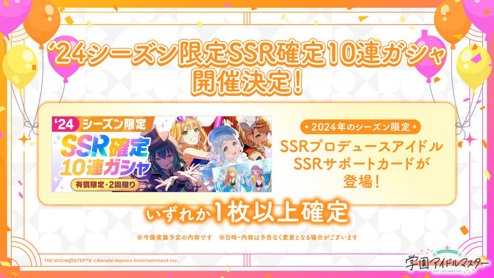 2025年5月16日(金)から、2024年に登場したシーズン限定SSRが1枚以上確定して登場する有償限定ガシャが開催されます