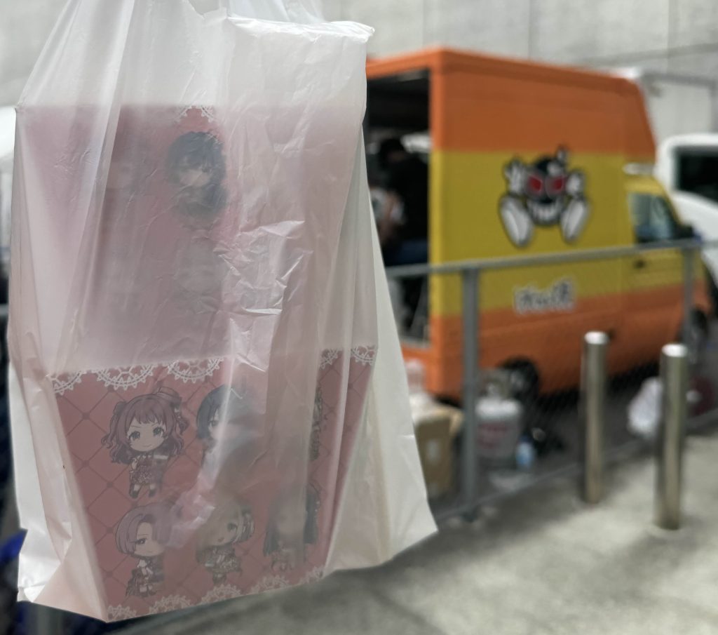 今回は、ライブ会場に入らないで楽しめるコンテンツは主に4つ、コトブキヤフィギュア展示、ばくだん焼きとアニメイトカフェ出張版、そして公式物販でした。