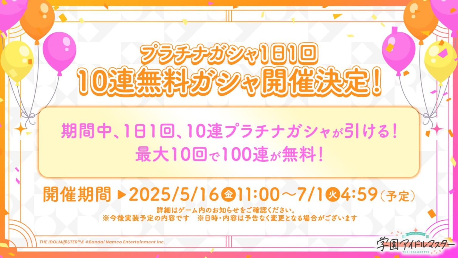 プラチナガシャ無料10連(計100連)(期間終了)