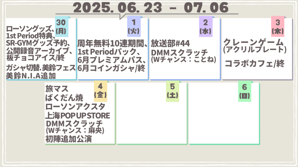 また、Xでは毎日学マスのスケジュール(グッズ発売日・イベント開始日など)を投稿していますので、グッズを買い忘れたくない方、当日のイベントを把握したい方はぜひフォローをお願いします!