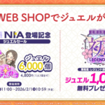 公式WEB SHOPセール&プレゼント 期間 2025年12月26日(金)11:00~2026年2月1日(日)10:59 1,000ジュエルプレゼントも2月1日終了です。お忘れなく。 公式サイトリンク