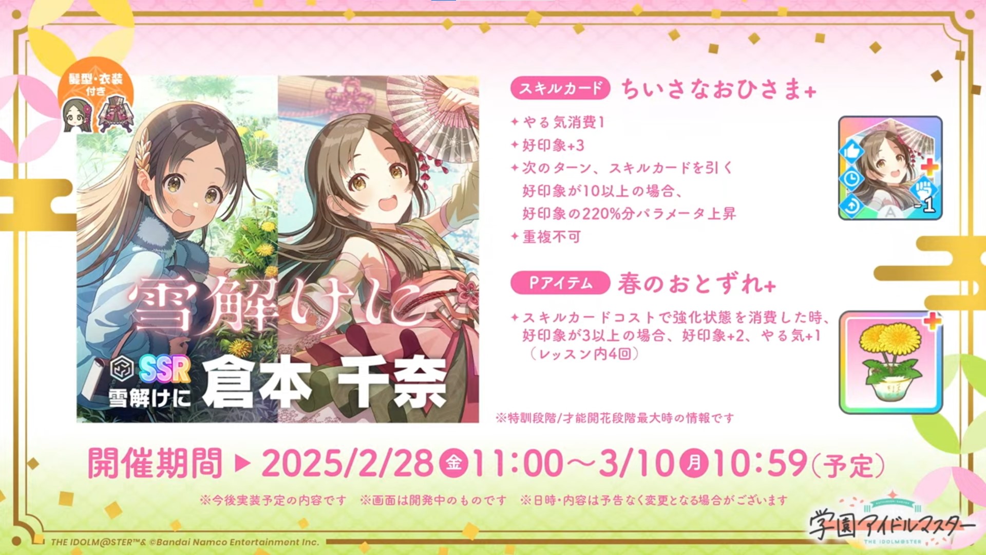 雪解けにガシャVol.1 2025 2/23 ad 2025年2月23日 イベント詳細 日付: 2025年2月28 – 3月10日 カテゴリ: ゲーム情報 目次雪解けにガシャVol.1 【本日のおすすめ①】篠澤 広~光景ver.~フィギュア TAITO GEAR&GOODS限定フィギュアが予約開始! TAITO GEAR&GOODS TAITO GEAR&GOODS ポチップ 【開催期間】 2025/2/28(金)11:00~2025/3/10(月)10:59 無料10連もありますので、お忘れなく! 【本日のおすすめ②】学園アイドルマスターウエハース3 予約開始! Amazon 楽天市場 ポチップ よかったらシェアしてね! URLをコピーしました! URLをコピーしました! ZOZOTOWNコラボ 雪解けにガシャVol.2 関連記事 初星学園HR #STEP3 月村 手毬 2026年1月12日 放送部71 2026年1月10日 メンバー限定MOIW2025特別配信DAY2 2026年1月9日 メンバー限定MOIW2025特別配信DAY1 2026年1月9日 ツアマス第4弾アプデ配信 2026年1月9日 声優グランプリ3月号 2026年1月9日 GOLD RUSH5巻発売日 2026年1月9日 ローソンプリント 2025年12月31日