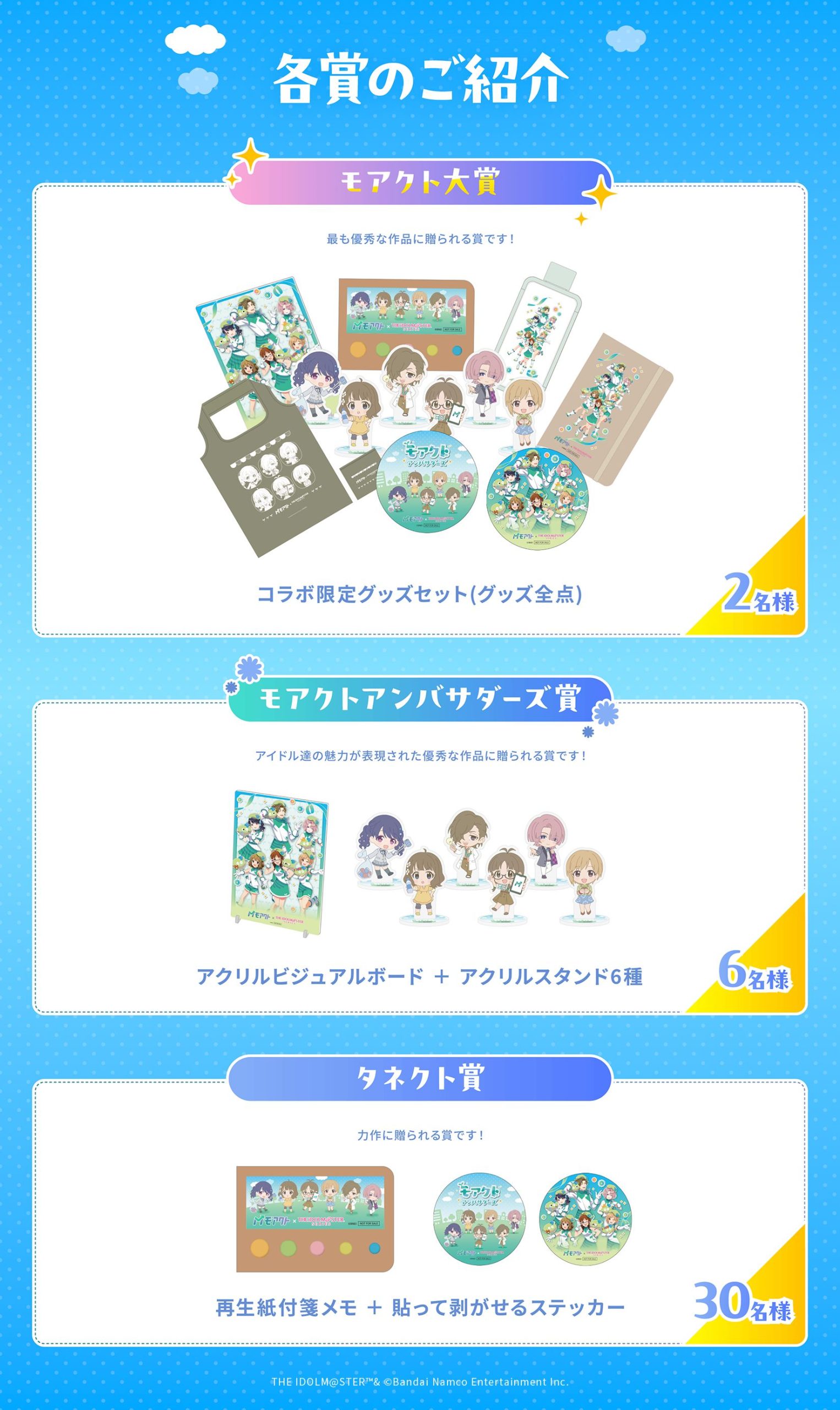 モアクトポスター 2025 3/18 ad 2025年3月18日 イベント詳細 日付: 2025年3月18 – 24日 カテゴリ: グッズ・コラボ情報 目次モアクト推進ポスターコンテスト 【本日のおすすめ①】月村手毬[PLUM]フィギュア 最安は楽天市場!あみあみ・ゲーマーズは特典付き! まとめ記事 まとめ記事 ポチップ テーマにあったイラストをX等に投稿し、入賞するとグッズが貰えます! 【テーマ】 『アイドルマスター』シリーズのアイドル×ソーシャルグッド 【応募期限】 3/24(月)11:59まで 【本日のおすすめ②】TSUTAYA コラボ『Wild TUNE』グッズ アクスタ、缶バッジなど、クールなイラストのグッズが3月22日まで受付中! まとめ記事 まとめ記事 ポチップ 【公式サイト】リンク よかったらシェアしてね! URLをコピーしました! URLをコピーしました! HMVコラボ事後通販 BCGF事後販売 関連記事 アニメイトカフェ予約期間③ 2026年3月4日 アニメイトカフェ予約期間② 2026年3月4日 アニメイトカフェ予約① 2026年3月4日 アニメイトカフェリバイバル 2026年3月4日 わかしさわがし、SEARCH RIGHTソロ 2026年3月2日 莉波・千奈・麻央 STEP3ポイントカラーアレンジ 2026年3月2日 初星音楽祭Blu-ray予約期間 2026年3月2日 咲季 STEP3情報配信 2026年3月2日