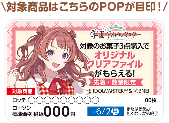 ローソンクリアファイル 2025 5/14 ad 2025年5月14日 イベント詳細 日付: 2025年5月20 – 6月2日 カテゴリ: グッズ・コラボ情報 ローソンクリアファイルキャンペーン ローソンでロッテの対象のお菓子を3つ購入で1枚クリアファイルが貰えます! 【本日のおすすめ③】Paludeコラボグッズ 美鈴をメインとしたコラボグッズ通販が開始!モコモコ可愛いグッズが多いです!! Paludeトップ まとめ記事 ポチップ 目次開催期間 2025年5月20日(火)朝7時~6月2日(月)※または景品が無くなり次第終了 オリジナルクリアファイル 対象のお菓子 【本日のおすすめ②】学園アイドルマスターウエハース3 予約開始! Amazon 楽天市場 ポチップ 【公式サイト】リンク よかったらシェアしてね! URLをコピーしました! URLをコピーしました! 放送部#37 西武園ゆうえんちコラボ 関連記事 放送部71 2026年1月10日 メンバー限定MOIW2025特別配信DAY2 2026年1月9日 メンバー限定MOIW2025特別配信DAY1 2026年1月9日 ツアマス第4弾アプデ配信 2026年1月9日 声優グランプリ3月号 2026年1月9日 GOLD RUSH5巻発売日 2026年1月9日 ローソンプリント 2025年12月31日 ローソン受取 2025年12月31日