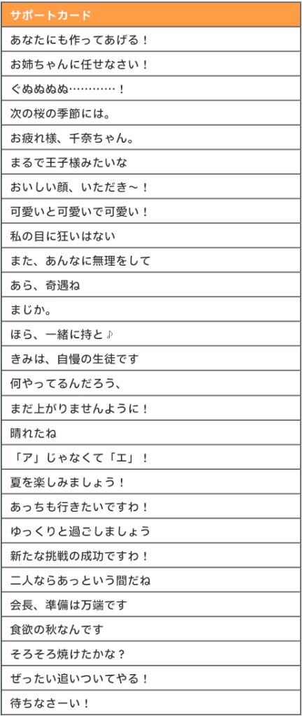 ピックアップにしたサポートカードは他のサポートカードより出現確立が上昇します。
