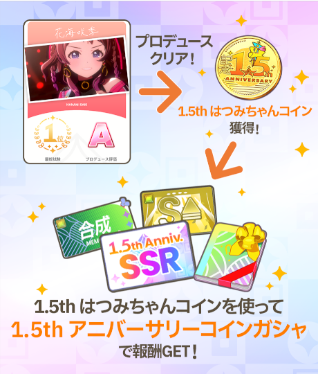 プロデュースをすると「1.5thはつみちゃんコイン」が獲得でき、ガシャを引くことができます!