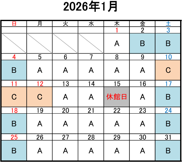 料金が3種類(A日程、B日程、C日程)あり、以下カレンダを確認してチケット購入ください。