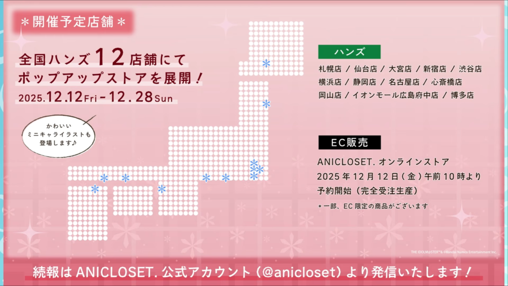 恐らく、「ANICLOSET.公式X」または、「各ハンズ公式X」で発表されると思われます。