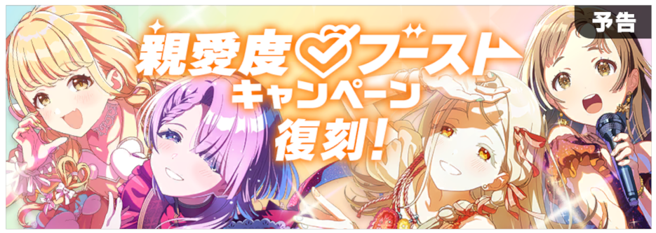※親愛度ブーストキャンペーンの挑戦には、対象アイドルの親愛度Lvが20以上の必要があります。