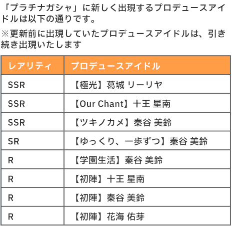 プラチナガシャ更新 2025 12/07 ad 2025年12月7日 イベント詳細 日付: 2025年12月26日 カテゴリ: ゲーム情報 プラチナガシャ更新 【本日のおすすめ①】篠澤 広~光景ver.~フィギュア TAITO GEAR&GOODS限定フィギュアが予約開始! TAITO GEAR&GOODS TAITO GEAR&GOODS ポチップ 目次更新日 2025年12月26日(金)11:00~ 更新情報 ※交換Ptはリセットされフラワーに変換されます。フラワー交換所とサポートの証交換所にもSSRは追加されます。 アイドルカード サポートカード 【本日のおすすめ②】学園アイドルマスターウエハース3 予約開始! Amazon 楽天市場 ポチップ よかったらシェアしてね! URLをコピーしました! URLをコピーしました! Chugai Caféコラボ先着予約 サポカ上昇補正 関連記事 メンバー限定MOIW2025特別配信DAY2 2026年1月9日 メンバー限定MOIW2025特別配信DAY1 2026年1月9日 ツアマス第4弾アプデ配信 2026年1月9日 声優グランプリ3月号 2026年1月9日 GOLD RUSH5巻発売日 2026年1月9日 ローソンプリント 2025年12月31日 ローソン受取 2025年12月31日 なりきりからあげクンぬい受取日 2025年12月31日