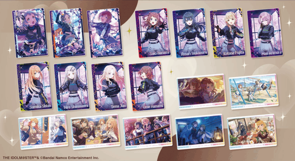 ココアクリーム味ウエハースをイメージした衣装を着た、アイドルたちの新規描き下ろしカードが収録されます。
