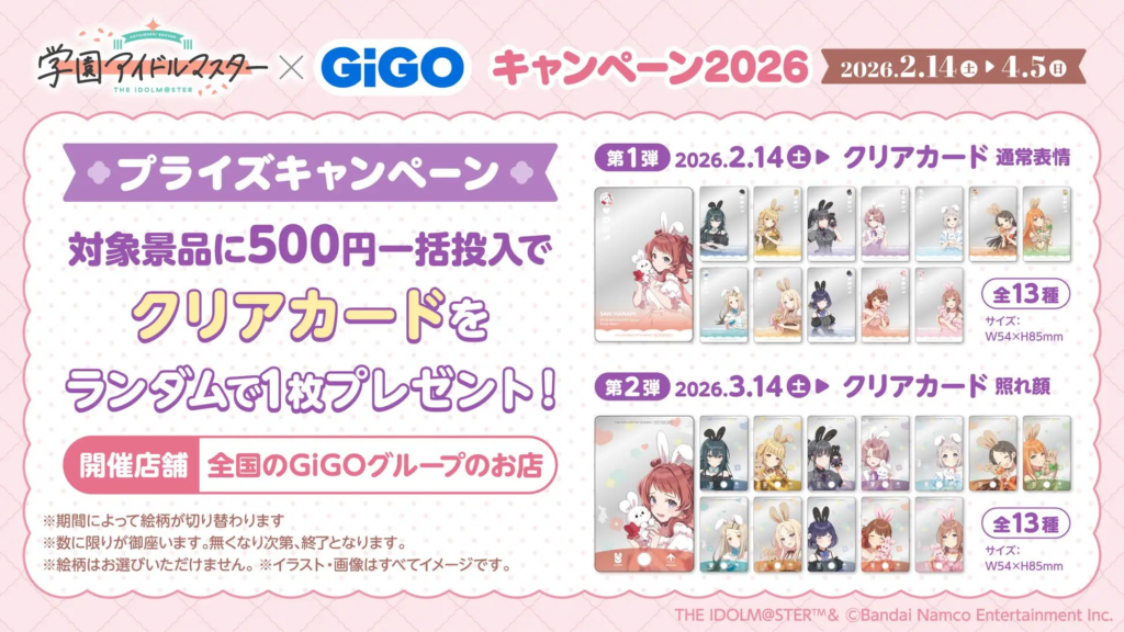 GiGOプライズ 2026 2/20 ad 2026年2月20日 イベント詳細 日付: 2026年2月14 – 4月5日 カテゴリ: グッズ・コラボ情報 GiGO コラボ 【本日のおすすめ③】極楽湯コラボ第2弾グッズ通販 現地販売されないオンライン限定グッズもあります! まとめ記事 まとめ記事 ポチップ 目次期間 2026年2月14日(土)~4月5日(日) 詳細 GiGOコラボプライズ ↓GIGO ONLINE CRANE(iOS版) ↓GIGO ONLINE CRANE(Android版) 各種キャンペーン 【本日のおすすめ④】篠澤 広 ハッピーミルフィーユフィギュア DMMが現在最安値! DMM まとめ記事 ポチップ よかったらシェアしてね! URLをコピーしました! URLをコピーしました! WildTUNE事後通販 音楽祭感想会DAY1 関連記事 親愛度ブーストキャンペーン復刻 2026年2月23日 放送部77 2026年2月22日 ムービックグッズ販売 2026年2月20日 音楽祭感想会DAY2 2026年2月20日 音楽祭感想会DAY1 2026年2月20日 WildTUNE事後通販 2026年2月20日 ふるさとアイドル便 第二弾 2026年2月20日 2nd Periodグッズ事前販売final 2026年2月19日