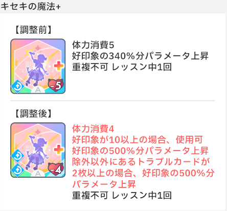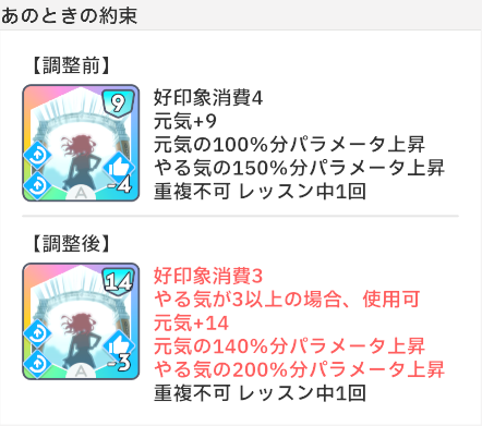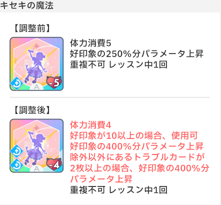スキルカード上方修正&メンテ 2026 3/28 ad 2026年3月28日 イベント詳細 日付: 2026年3月31日 カテゴリ: ゲーム情報 スキルカード上方修正&メンテ 【本日のおすすめ①】JR東海コラボグッズ通販 eeostoreにて予約開始!アクスタや缶バッジなど様々なグッズがあります! まとめ記事 まとめ記事 ポチップ 目次メンテ日 2026年3月31日(火)10:50~11:00 詳細 メンテナンス期間前に挑戦中のプロデュースデータおよびアイドルへの道挑戦中データ破棄されるようなので、終わらせておきましょう。 【本日のおすすめ②】TSUTAYA コラボ『Wild TUNE』グッズ アクスタ、缶バッジなど、クールなイラストのグッズが3月22日まで受付中! まとめ記事 まとめ記事 ポチップ よかったらシェアしてね! URLをコピーしました! URLをコピーしました! 放送部82 関連記事 放送部82 2026年3月28日 学園アイドルマスターFigUnity予約日 2026年3月27日 標TOUR アソビストアプレミアム当落 2026年3月27日 標TOUR アソビストアプレミアム抽選申込 2026年3月27日 HR STEP3花海佑芽 2026年3月27日 HMV POP UP SHOP 2弾 2026年3月27日 “アイ”のキセキR@DIO vol.1 2026年3月27日 MOIW カスタマイズTシャツ 2026年3月27日