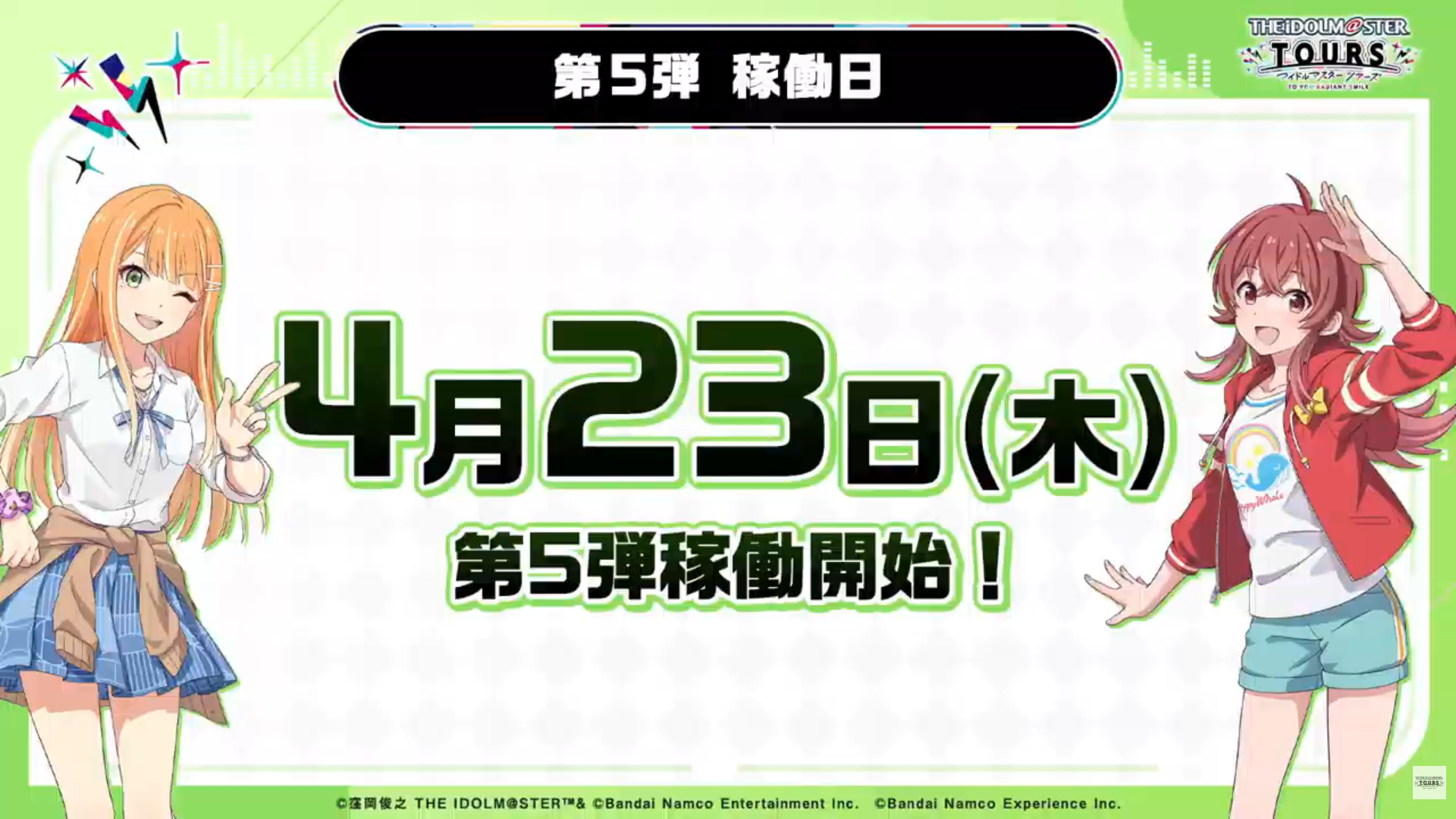 ツアマス第5弾稼働日 2026 4/14 ad 2026年4月14日 イベント詳細 日付: 2026年4月23日 カテゴリ: グッズ・コラボ情報 ツアマス第5弾稼働日 【本日のおすすめ①】FigUnity(フィギュニティ) DMMが16%OFF送料無料で最安! DMM まとめ記事 ポチップ 目次稼働日 2026年4月23日(木) 詳細 紫雲清夏追加! 【本日のおすすめ③】月村手毬-Luna say maybe-フィギュア DMMが最安!送料無料です!11%oFF DMM まとめ記事 ポチップ 楽曲追加! カード追加!(学マスアイドルが映っているもののみ記載) ロードマップ 【本日のおすすめ②】初星学園入学準備フェア 4月12日まで!追加グッズも続々登場! まとめ記事 まとめ記事 ポチップ よかったらシェアしてね! URLをコピーしました! URLをコピーしました! アイマスIWSF2026続報配信 関連記事 アイマスIWSF2026続報配信 2026年4月14日 HANABIYORIワークショップ予約日 2026年4月13日 雪解けにガシャ 2026年4月12日 放送部84 2026年4月11日 Re;IRISフィギュア 咲季受注 2026年4月11日 ゴルラ ことねバースデーフェア 2026年4月11日 H.I.F選抜試験公式リセール 2026年4月10日 H.I.F選抜試験一般販売(先着) 2026年4月10日